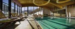 The Sky Spa is perched on the hotel’s rooftop, offering indoor and outdoor pools, saunas, and treatment rooms with mountain views. It’s a sanctuary of calm, ideal for recovery after a day on the slopes or meetings. The hotel also offers yoga, fitness classes, and direct access to hiking and biking trails in summer, and ski-in/ski-out convenience in winter.